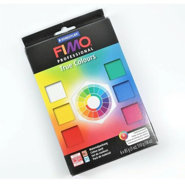 Le coffret Fimo Pro True colors contient 6 pains de Fimo de 85g. Découvrez dans ce pack du vert pur, du bleu pur, du rouge pur, du jaune pur, du magenta pur et du blanc.