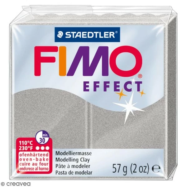 La pâte Fimo Effect Gris clair perle 817 est une pâte à modeler qui durcit en la passant au four. Agréable à travailler car très malléable, elle permet aux petits comme aux grands de réaliser diverses créations.