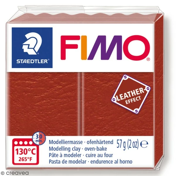 La pâte Fimo Effet Cuir Rouille 57 g est une pâte à modeler qui durcit en la passant au four. AgrÊable à travailler car très mallÊable, elle permet aux petits comme aux grands de rÊaliser diverses crÊations.
