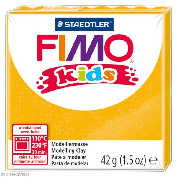 – Pâte Fimo Kids Or pailleté certifiée CE.