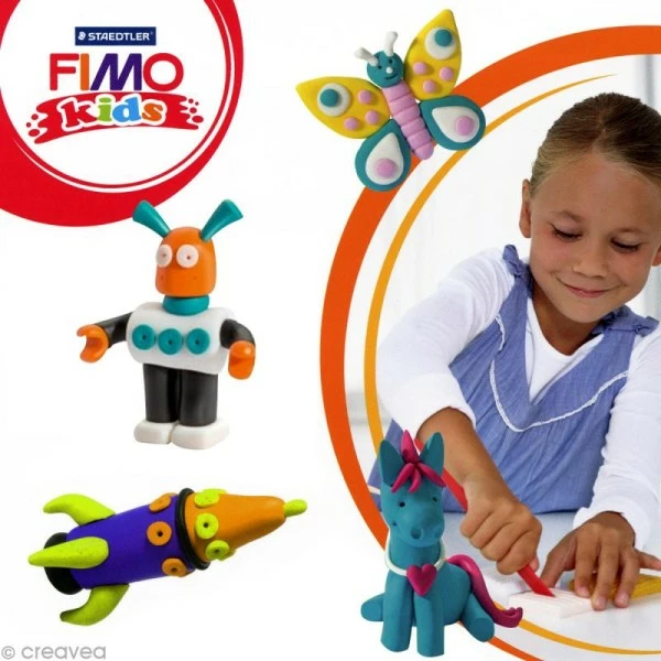 – Choisir les pains de Fimo Kids en fonction du modelage que l’enfant souhaite réaliserfigurine, bijou, objet, etc.