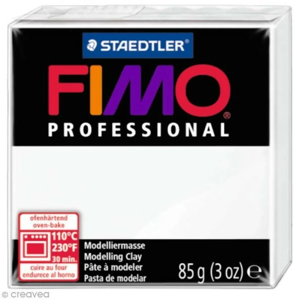 Le pain de Fimo Professional Blanc se présente en paquet de 85 gr.