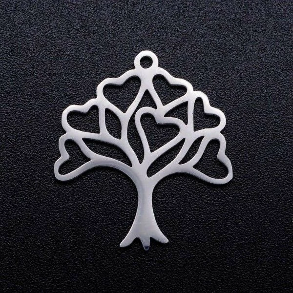 BU11220308164750 NO1 PAX 2 Pendentifs, breloques – Arbre à cœurs – 21 mm – Argenté en Acier Inoxydable 201 – Placage Ionique
