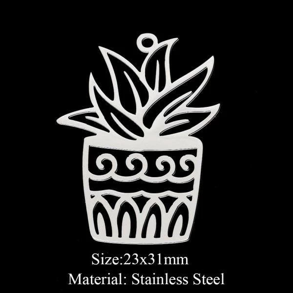 BU11220402100534 NO 3 PAX 1 Breloque – Plante dans Pot – 23 par 31 mm – ArgentĂ© en Acier Inoxydable 201 – Placage Ionique