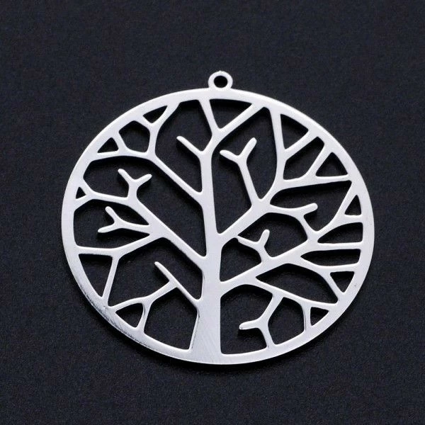 BU11220402163833 PAX 1 Breloques -MĂ©daille avec Arbre 35 mm – ArgentĂ© en Acier Inoxydable 201 – Placage Ionique