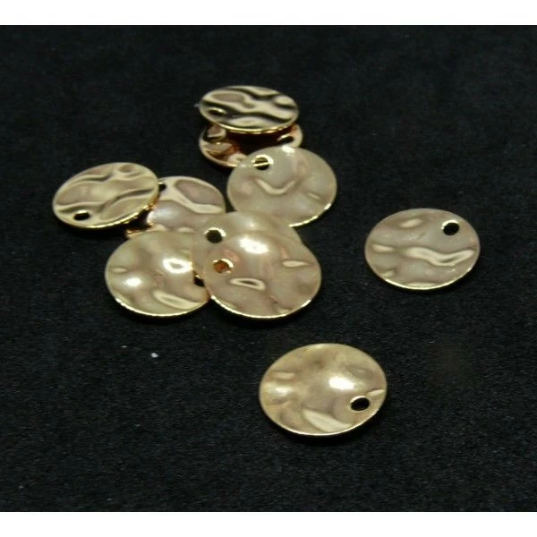 HQ73517G PAX 10 Pendentifs, Médaillon style Martelé 10mml en Laiton finition Doré 18KT pour création de bijoux raffinés