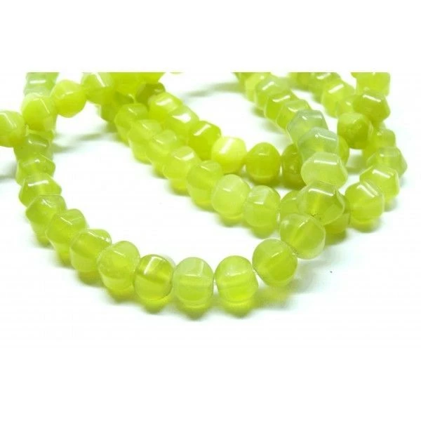 Lot de 4 perles Jade Citron Naturelles forme Lanterne 10mm ( forme originale et rare )