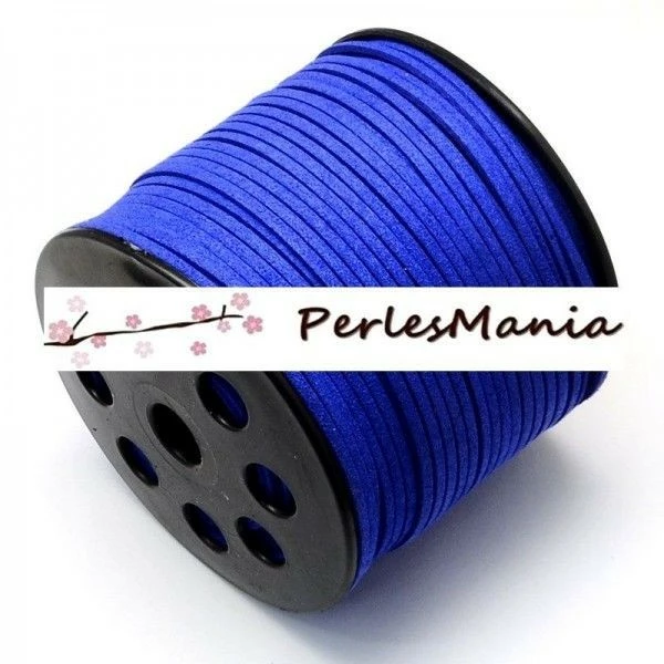 Description de Lot de 5 mètres de cordon en suédine Bleu Electrique 3 mm aspect daim ref 1146