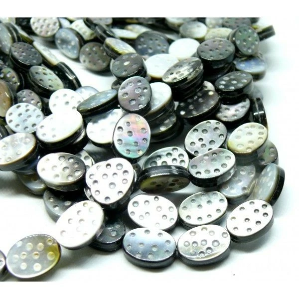 Description de Lot de 6 perles nacre Grise Blanche plate Ovale 13 par 19mm Biface avec motif trou