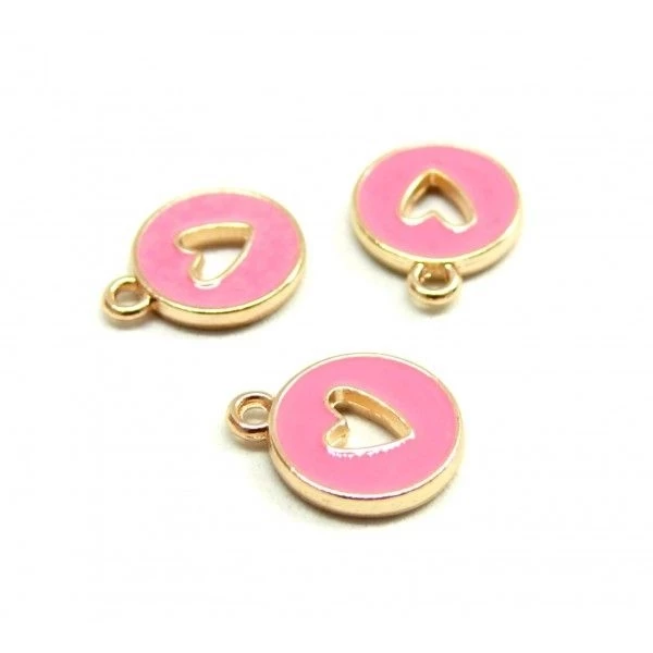 Description de PS11844401 PAX 4 sequins médaillons résine émaillés CŒUR 12 mm ROSE métal doré