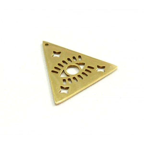 PS11847096 PAX 1 Pendentif Triangle Étoile, Œil de la protection, Grigri 25 mm, Acier Inoxydable finition Doré Placage sous vide